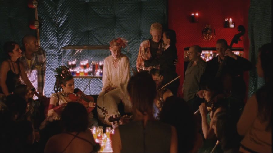 在我们第一次来到短巴士俱乐部的时候,可以看到有一位俱乐部的会员从盘子里拿了一些东西吃,这位客人是电影《诅咒》(Tarnation 2003)的导演乔纳森·卡乌特(Jonathan Caouette)。《性爱巴士》的导演约翰·卡梅隆·米切尔在《诅咒》中曾经担任过执行制片。